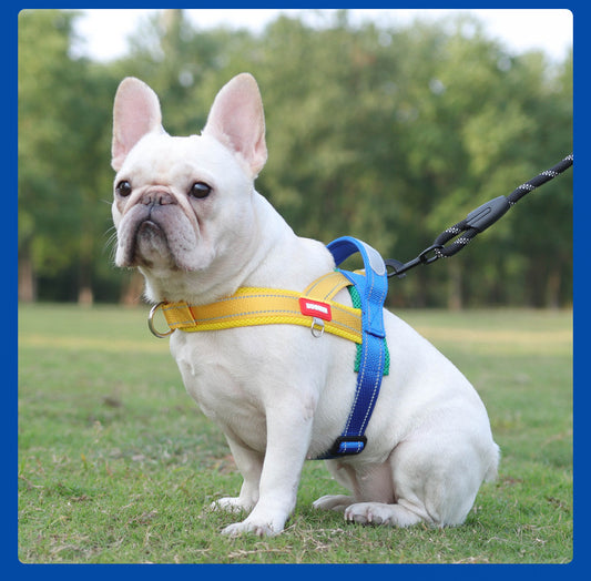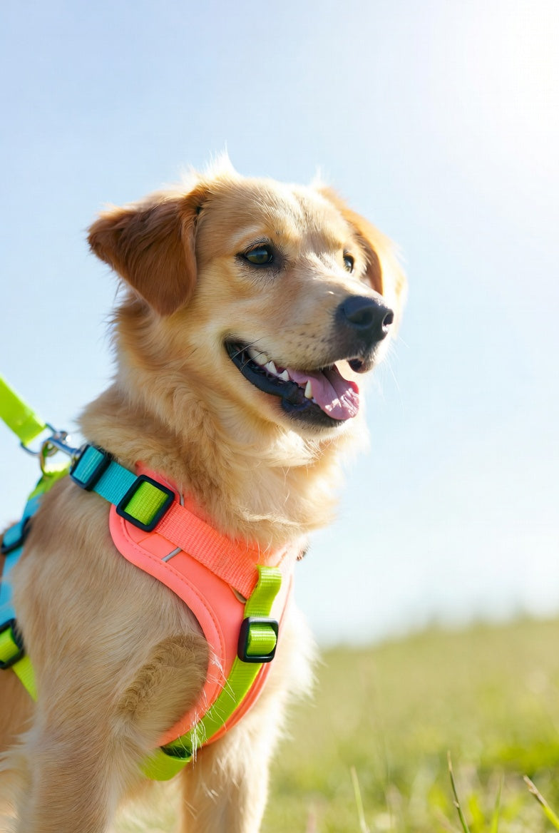 Modern harnesses made for daily walks, with bold color and easy comfort.